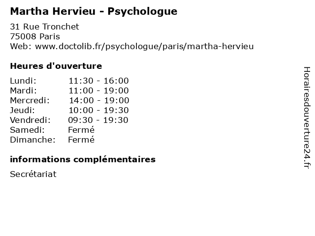 Termes de recherche pour Martha Hervieu - Psychologue:folie, psychiatrique, psychiatrie, psychologue, psychiatre, hervieu, martha |