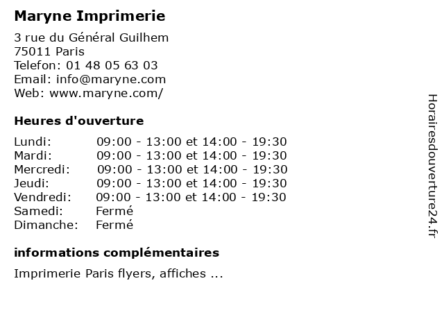 | Lundi | 09:00-13:00 et 14:00-19:30 |