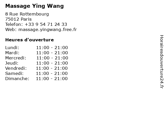 | Mercredi | 11:00-21:00 |