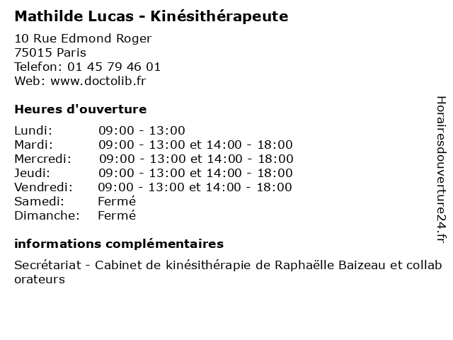 | Mardi | 09:00-13:00 et 14:00-18:00 |