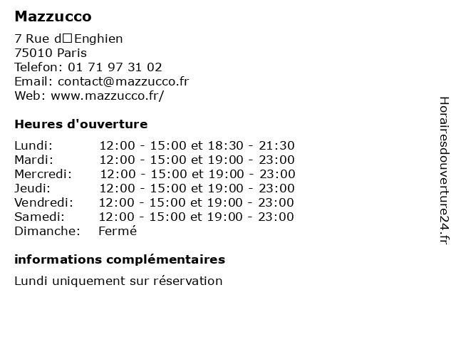 | Mardi | 12:00-15:00 et 19:00-23:00 |