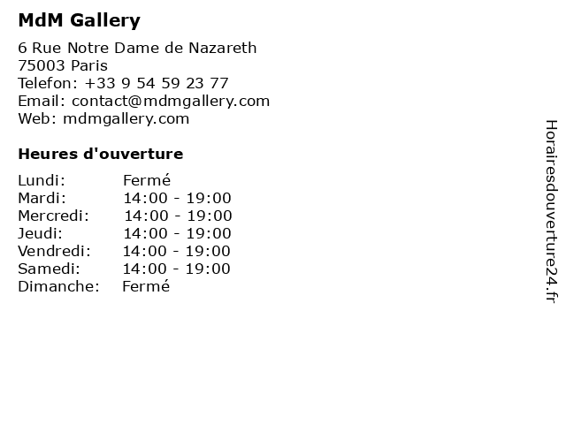 | Samedi | 14:00-19:00 |