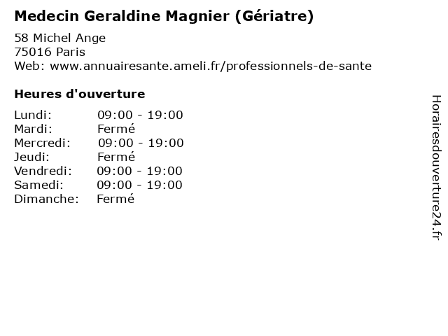 1 Medecin Geraldine Magnier - Consultation a domicile (Gériatre) (Distance: 0,00 km) 58 Michel Ange, 75016 Paris consultation, docteur, domicile, geraldine, gériatre, magnier, medecin, sante, services 2 Medecin Odile Champart Curie (Gériatre) (Distance: 4,28 km) 28 Barbet de Jouy, 75007 Paris champart, curie, docteur, gériatre, medecin, odile, sante, services 3 Medecin Odile Champart Curie - Consultation a domicile (Gériatre) (Distance: 4,28 km) 28 Barbet de Jouy, 75007 Paris champart, consultation, curie, docteur, domicile, gériatre, medecin, odile, sante, services 4 Dr Nadia Dahmoun - Gériatre - secrétariat (Distance: 9,14 km) 6 Avenue du Maréchal Franchet d'Esperey, 78000 Versailles consultation, dahmoun, docteur, dr, gériatre, med, médecin, médecine, nadia, secrétariat, traitement 5 Medecin Bernard Charles (Gériatre) (Distance: 9,28 km) 15T Rue des Tournelles, 94240 L'Hay les Roses bernard, charles, docteur, gériatre, medecin, sante, services 6 Medecin Salim Gherabli (Gériatre) (Distance: 10,91 km) 67 Rue d'Estienne-d'Orves, 91370 Verrieres le Buisson docteur, gherabli, gériatre, medecin, salim, sante, services |