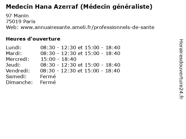 | Lundi | 08:30-12:30 et 15:00-18:40 |