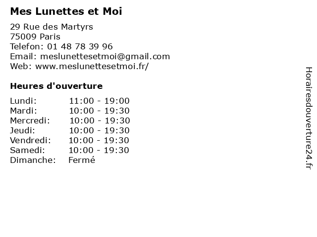 | Lundi | 11:00-19:00 |