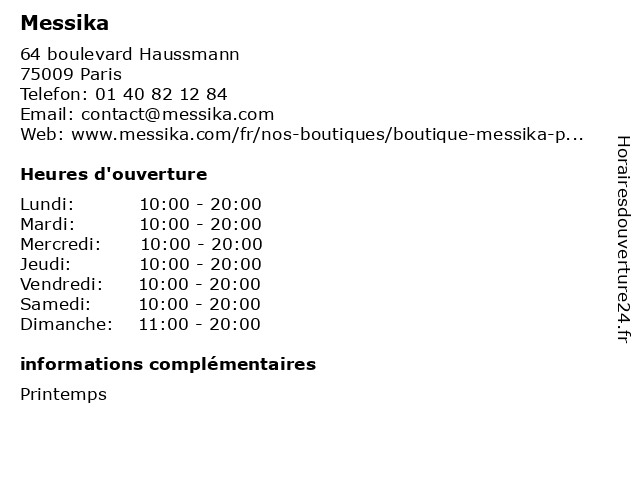 | Samedi | 10:00-20:00 |