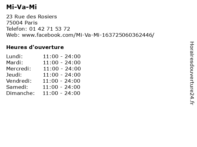| Mercredi | 11:00-24:00 |