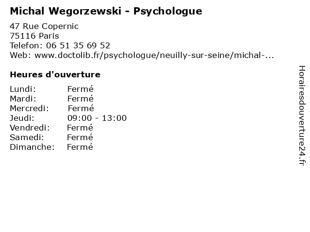 Termes de recherche pour Michal Wegorzewski - Psychologue:santé, soins, psychologue, psychiatre, psy, michal, wegorzewski |