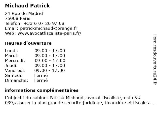 1 Maître Patrick Biancaniello - Avocat (Distance: 0,66 km) 1 rue d'Astorg, 75008 Paris avocat, avocats, biancaniello, cabinet, conseils, contentieux, juridique, justice, litiges, maître, patrick, services 3 Cabinet Dentaire Dr Patrick Bauer (Distance: 0,90 km) 71 avenue Franklin D. Roosevelt, 75008 Paris bauer, cabinet, consultations, dentaire, dr, du, extraction, patrick, traitements 4 Dr Patrick-Pierre Sabatier - Médecin nutritionniste (Distance: 0,96 km) 54 Rue du Faubourg Saint-Honoré,, 75008 Paris dr, médecin, médecins, médicaments, nutritionniste, patrick, pierre, sabatier, santé, secrétariat, spécialiste 5 Dr Patrick Clere - ORL (Distance: 1,06 km) 8 Rue de Chazelles, 75017 Paris clere, dr, médecins, orl, patrick, santé 6 Dr Patrick Bahm - Chirurgien-dentiste (Distance: 1,14 km) 1 Rue de Chazelles, 75017 Paris bahm, chirurgien, dentaire, dentiste, dr, implantologie, parodontologie, patrick |