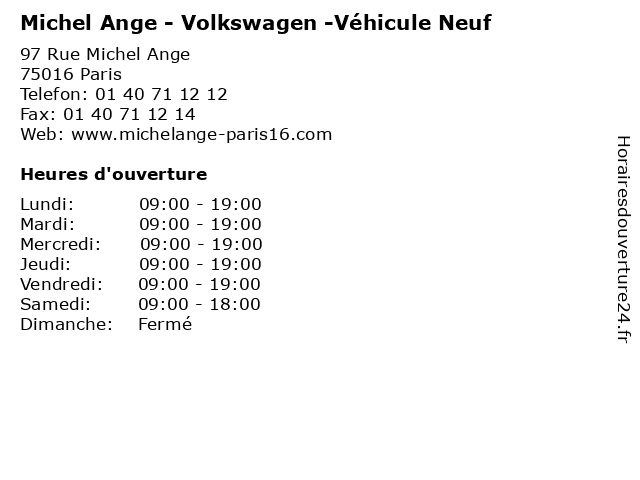 1 Michel Ange - Volkswagen - Véhicule occasion (Distance: 0,00 km) 97 Rue Michel Ange, 75016 Paris ange, automobile, commercial, concessionnaire, michel, occasion, vente, volkswagen, véhicule 2 Michel Ange - Volkswagen - Atelier (Distance: 0,00 km) 97 Rue Michel Ange, 75016 Paris ange, atelier, automobiles, concessionnaire, garage, michel, motos, mécanique, volkswagen 3 Parking Zenpark (Porte de Saint-Cloud - Michel Ange) (Distance: 0,07 km) 112 Rue Michel Ange, 75016 Paris ange, cloud, de, michel, parking, porte, saint, stationnement, zenpark 4 Maître Jean-Michel Orefice - Avocat (Distance: 0,44 km) 48 Boulevard Exelmans, 75016 Paris avocat, jean, justice, lois, maitre, maître, michel, orefice 5 Follea Michel (Distance: 0,53 km) 4 Rue Henri Martin, 92100 Boulogne Billancourt follea, michel, restaurants 6 École élémentaire application Michel Ange (Distance: 0,53 km) 51 Rue Michel Ange, 75016 Paris ange, application, cours, michel, servicios, école, élémentaire |