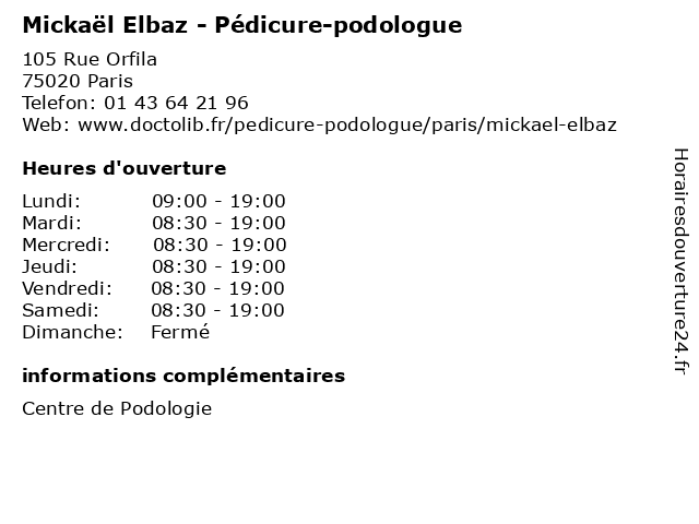 1 Mickaël Elbaz - Pédicure-podologue (Distance: 0,00 km) 105 Rue Orfila, 75020 Paris dr, elbaz, medical, mickaël, podologue, pédicure, secrétariat 2 Mickaël Elbaz - Pédicure-podologue (Distance: 0,00 km) 105 Rue Orfila, 75020 Paris dr, elbaz, medical, mickaël, podologue, pédicure, secrétariat 3 Sylvie Bechu - Pédicure-podologue (Distance: 0,00 km) 105 Rue Orfila, 75020 Paris bechu, consultation, docteur, médecin, médecine, podologue, pédicure, pédicure-podologue, secrétariat, sylvie, traitement 4 Wassila Emrani - Pédicure-podologue (Distance: 0,00 km) 105 Rue Orfila, 75020 Paris consultation, docteur, emrani, médecin, médecine, podologue, pédicure, pédicure-podologue, secrétariat, traitement, wassila 5 Cloé Millour - Pédicure-podologue (Distance: 0,00 km) 105 Rue Orfila, 75020 Paris cloé, consultation, docteur, millour, médecin, médecine, podologue, pédicure, pédicure-podologue, secrétariat, traitement 6 Emilie Mari - Pédicure-podologue (Distance: 0,50 km) 74 Rue des Prairies, 75020 Paris cheville, emilie, mari, orteil, pied, podologue, pédicure |