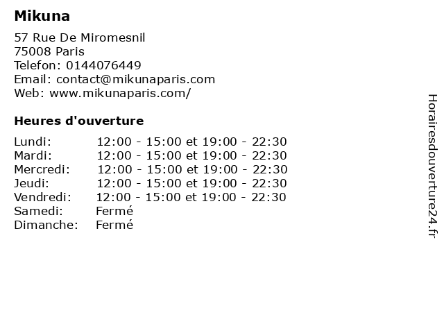 | Lundi | 12:00-15:00 et 19:00-22:30 |