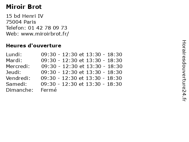 | Samedi | 09:30-12:30 et 13:30-18:30 |
