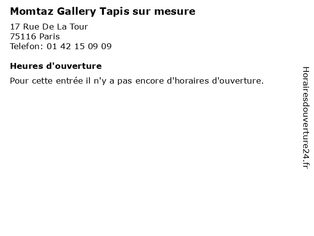 | Appeler Momtaz Gallery Tapis sur mesure | |