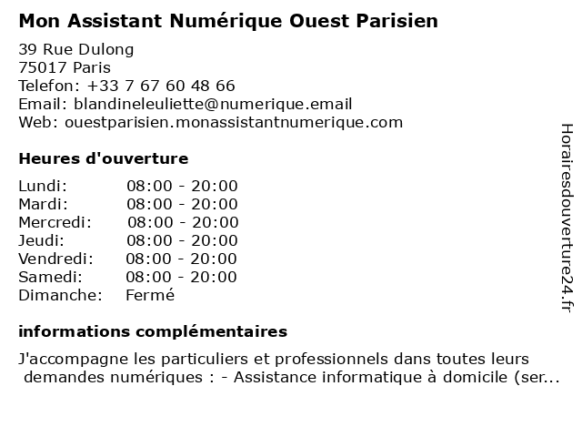 | Lundi | 08:00-20:00 |