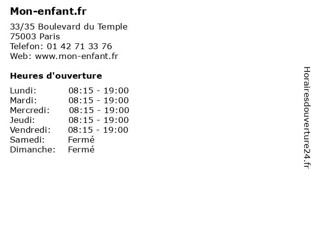 | Lundi | 08:15-19:00 |