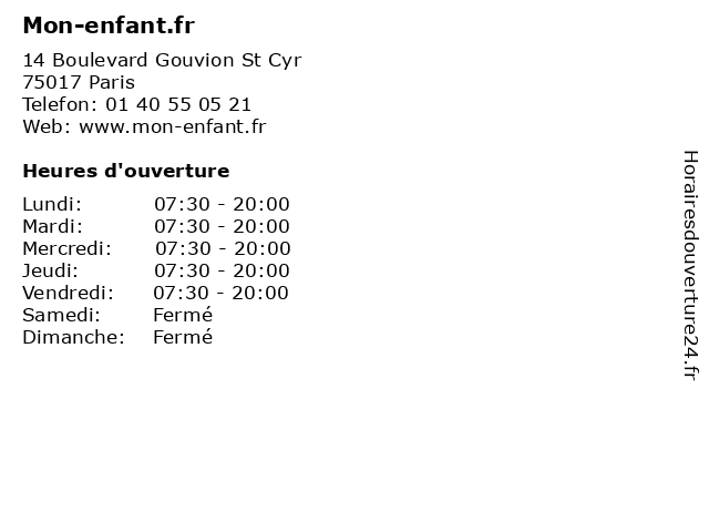 | Vendredi | 07:30-20:00 |