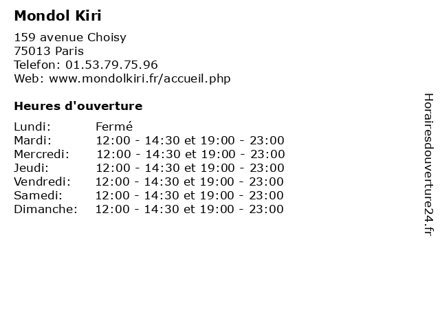 Mardi | 12:00-14:30 et 19:00-23:00 |