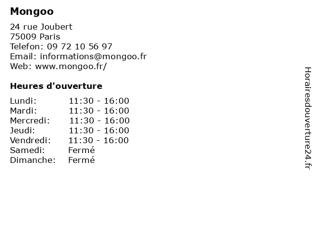 1 Mongoo (Distance: 0,35 km) 30 Rue Godot de Mauroy, 75009 Paris bar à salade, boissons, mongoo, restaurant, restauration, salades 2 Mongoo (Distance: 0,73 km) 22 rue Saint Augustin, 75002 Paris bar à salade, boissons, mongoo, restaurant, restauration, salades 3 Mongoo (Distance: 1,16 km) 42 rue des Jeûneurs, 75002 Paris bar à salade, boissons, mongoo, restaurant, restauration, salades 4 Mongoo (Distance: 1,36 km) 54 rue du Faubourg Poissonnière, 75010 Paris bar à salade, boissons, mongoo, restaurant, restauration, salades 5 Mongoo (Distance: 1,90 km) 33 Rue Washington, 75008 Paris bar à salade, boissons, mongoo, restaurant, restauration, salades 6 Mongoo (Distance: 5,14 km) 14 avenue Pierre Mendès France, 75013 Paris bar à salade, boissons, mongoo, restaurant, restauration, salades |