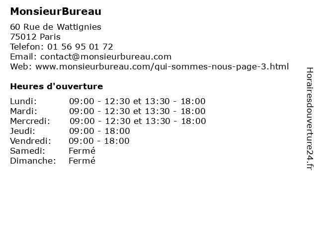| Lundi | 09:00-12:30 et 13:30-18:00 |