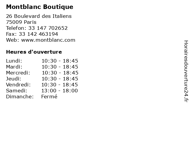 1 Montblanc Boutique (Distance: 0,21 km) 12, Bd des Capucines, 75002 Paris boutique, jewelry, montblanc, stores, watches 2 Montblanc Boutique (Distance: 0,43 km) 12 Rue de Mogador, 75009 Paris boutique, jewelry, montblanc, stores, watches 3 Montblanc Boutique (Distance: 1,89 km) 71, rue la Boétie, 75008 Paris boutique, jewelry, montblanc, stores, watches 4 Montblanc Boutique (Distance: 2,22 km) 40 Rue Marbeuf, 75008 Paris boutique, jewelry, montblanc, stores, watches 5 Montblanc Boutique (Distance: 2,23 km) 47 Rue des Francs Bourgeois, 75004 Paris boutique, jewelry, montblanc, stores, watches 6 Montblanc Boutique (Distance: 2,29 km) 7 Rue de Tournon, 75006 Paris boutique, jewelry, montblanc, stores, watches |