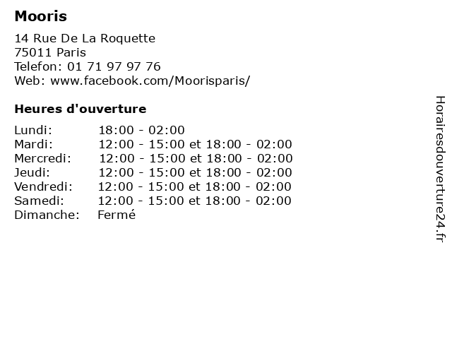 | Mardi | 12:00-15:00 et 18:00-02:00 |