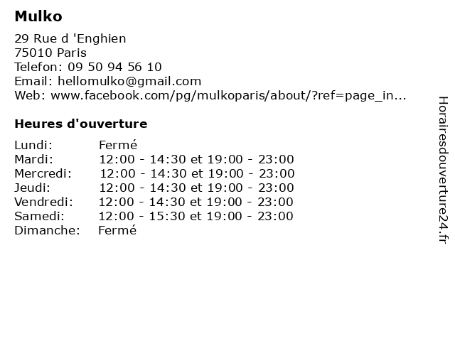 | Mardi | 12:00-14:30 et 19:00-23:00 |