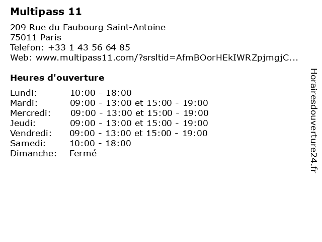| Mardi | 09:00-13:00 et 15:00-19:00 |