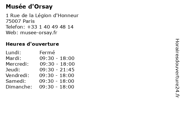 1 Orsay Museum - Ouverture (Distance: 0,00 km) 1 rue de la Légion d'Honneur, 75007 Paris museum, orsay, ouverture, sculpture 2 Orsay Museum - Librairie - boutique (Distance: 0,00 km) 1 rue de la Légion d'Honneur, 75007 Paris boutique, librairie, museum, orsay, sculpture 3 Orsay Museum - au restaurant (Distance: 0,00 km) 1 rue de la Légion d'Honneur, 75007 Paris au, food, museum, orsay, restaurant, sculpture 4 Orsay Museum - au restaurant - Tea Room (Distance: 0,00 km) 1 rue de la Légion d'Honneur, 75007 Paris au, food, museum, orsay, restaurant, room, sculpture, tea 5 Orsay Museum - au café Campana (Distance: 0,00 km) 1 rue de la Légion d'Honneur, 75007 Paris au, café, campana, food, museum, orsay, restaurant, sculpture, tea 6 Orsay Museum - au café de l'Ours (Distance: 0,00 km) 1 rue de la Légion d'Honneur, 75007 Paris au, café, de, food, l'ours, museum, orsay, restaurant, sculpture, tea |