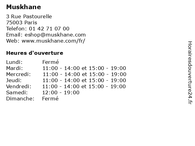 | Mercredi | 11:00-14:00 et 15:00-19:00 |