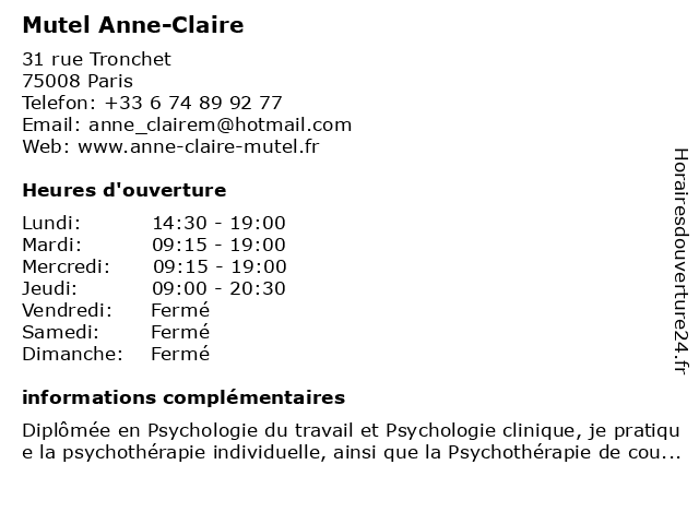 Termes de recherche pour Mutel Anne-Claire:paris, anne, claire, psychologue, mutel |