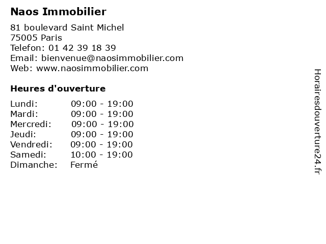 Horaires d'ouverture |