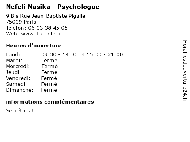 1 Sylvia Lounis - Psychologue (Distance: 0,00 km) 9 bis Rue Jean-Baptiste Pigalle, 75009 Paris folie, lounis, psychiatre, psychiatrie, psychiatrique, psychologue, sylvia 2 Anna Ivanov - Psychologue (Distance: 0,00 km) 9b Rue Jean-Baptiste Pigalle, 75009 Paris anna, folie, ivanov, psychiatre, psychiatrie, psychiatrique, psychologue 3 Dr Agathe Perony - Psychiatre (Distance: 0,13 km) 43 Rue la Bruyère, 75009 Paris agathe, cabinet, consultation, dr, perony, psychiatre, santé, thérapie 4 Dr Florent Gros - Psychiatre (Distance: 0,38 km) 21 Rue Pierre Fontaine, 75009 Paris cabinet, consultation, dr, florent, gros, psychiatre, psychiatrie, thérapie 5 Dr Tania Abou Abdallah - Psychiatre (Distance: 0,50 km) 22 Rue de Vintimille, 75009 Paris abdallah, abou, cabinet, dr, mentale, psychiatre, psychiatrie, santé, tania, thérapie 6 Dr Pierre Marcombes - Psychiatre (Distance: 0,65 km) 4 Rue de Berne, 75008 Paris dr, marcobes, marcombes, pierre, psychanalyse, psychiatre, psychiatrie, psychothérapie, santé |