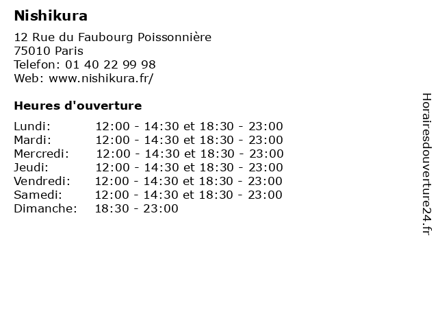 | Lundi | 12:00-14:30 et 18:30-23:00 |