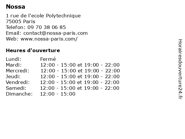 | Jeudi | 12:00-15:00 et 19:00-22:00 |