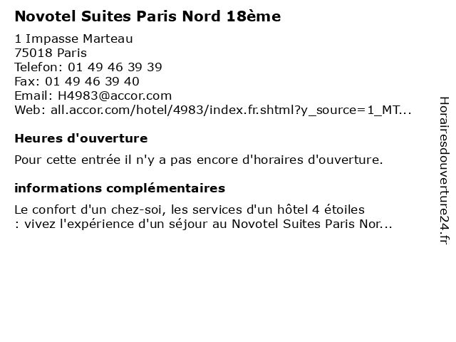 | Appeler Novotel Suites Paris Nord 18ème | |