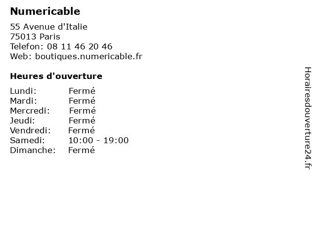 | Samedi | 10:00-19:00 |