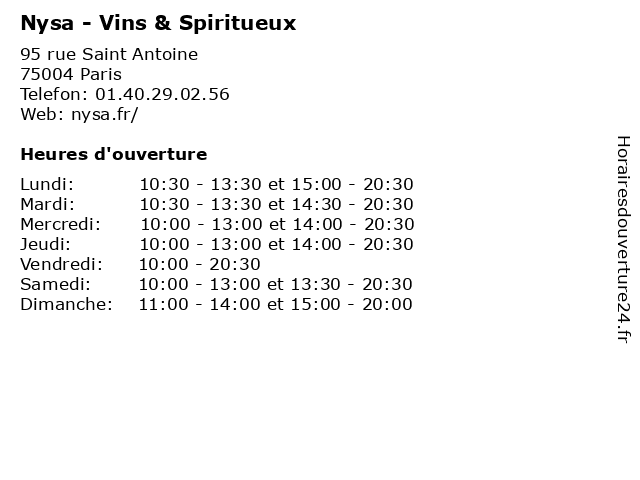 | Samedi | 10:00-13:00 et 13:30-20:30 |