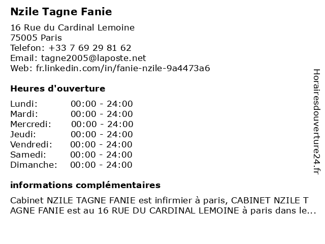 1 Maître Francis Tagne - Avocat (Distance: 11,18 km) 12 Rue Salvador Allende, 92000 Nanterre avocat, avocate, avocats, civils, droits, francis, juridiques, maître, tagne 2 Dr Delphine Kamgaing Tagne - Médecin généraliste (Distance: 22,33 km) 2 Place Danielle Casanova, 95190 Goussainville consultation, delphine, docteur, dr, générale, généraliste, kamgaing, libre, médecin, médecine, médecins, santé, tagne 3 Dr Léopold Tagne - Médecin généraliste (Distance: 22,33 km) 2 Place Danielle Casanova, 95190 Goussainville consultation, docteur, dr, générale, généraliste, libre, léopold, médecin, médecine, médecins, santé, tagne 4 Aude Kouawa Tagne - Sage-femme (Distance: 33,61 km) 19 Rue de la Mareche, 95180 Menucourt aude, femme, kouawa, medical, sage, sagefemme, tagne |