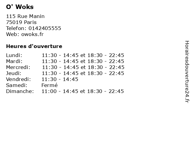 | Lundi | 11:30-14:45 et 18:30-22:45 |