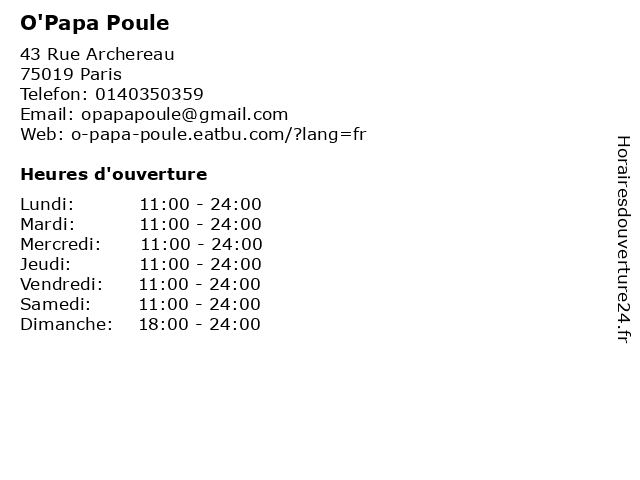 1 Chez Papa (Distance: 1,28 km) 206 rue La Fayette, 75010 Paris brasserie, chez, cuisine, papa, restaurant, restauration, sud-ouest 2 Chez Papa (Distance: 2,19 km) 13 rue du Pré St Gervais, 75019 Paris brasserie, chez, cuisine, papa, restaurant, restauration, sud-ouest 3 Ô Q De Poule (Distance: 2,49 km) 53 Rue Du Ruisseau, 75018 Paris boissons, de, poule, restaurants, saldin 4 Paella Papa (Distance: 2,66 km) 3 Rue Du Port, 93300 Aubervilliers achraf, majeri, paella, papa, restaurants 6 Chez Papa (Distance: 3,29 km) 153 rue Montmartre, 75002 Paris brasserie, chez, cuisine, papa, restaurant, restauration, sud-ouest |