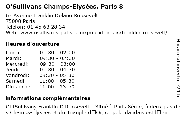 Termes de recherche pour O'Sullivans Champs-Elysées, Paris 8:bar, champs, paris, elysees, restaurants, o'sullivans, bar sportif, bar-salon |