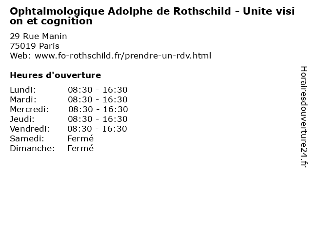 1 Ophtalmologique Adolphe de Rothschild - Consultations et examens speciales (Distance: 0,00 km) 29 Rue Manin, 75019 Paris adolphe, bureau, consultation, consultations, de, dr, et, examens, la maladie, la médecine, la pratique, med, médecin, ophtalmologique, rothschild, speciales, thérapie, traitement 2 Ophtalmologique Adolphe de Rothschild - Consultations et examens speciales - Affluence Faible (Distance: 0,00 km) 29 Rue Manin, 75019 Paris adolphe, affluence, bureau, consultation, consultations, de, dr, et, examens, faible, la maladie, la médecine, la pratique, med, médecin, ophtalmologique, rothschild, speciales, thérapie, traitement 3 Ophtalmologique Adolphe de Rothschild - Consultations et examens speciales - Affluence Moyenne (Distance: 0,00 km) 29 Rue Manin, 75019 Paris adolphe, affluence, bureau, consultation, consultations, de, dr, et, examens, la maladie, la médecine, la pratique, med, moyenne, médecin, ophtalmologique, rothschild, speciales, thérapie, traitement 4 Ophtalmologique Adolphe de Rothschild - Consultations et examens speciales - Affluence Forte (Distance: 0,00 km) 29 Rue Manin, 75019 Paris adolphe, affluence, bureau, consultation, consultations, de, dr, et, examens, forte, la maladie, la médecine, la pratique, med, médecin, ophtalmologique, rothschild, speciales, thérapie, traitement 5 Ophtalmologique Adolphe de Rothschild - Consultations refractive (Distance: 0,00 km) 29 Rue Manin, 75019 Paris adolphe, bureau, consultation, consultations, de, dr, la maladie, la médecine, la pratique, med, médecin, ophtalmologique, refractive, rothschild, thérapie, traitement 6 Ophtalmologique Adolphe de Rothschild - Consultation ERG, PEV (Distance: 0,00 km) 29 Rue Manin, 75019 Paris adolphe, bureau, consultation, de, dr, erg, la maladie, la médecine, la pratique, med, médecin, ophtalmologique, pev, rothschild, thérapie, traitement |