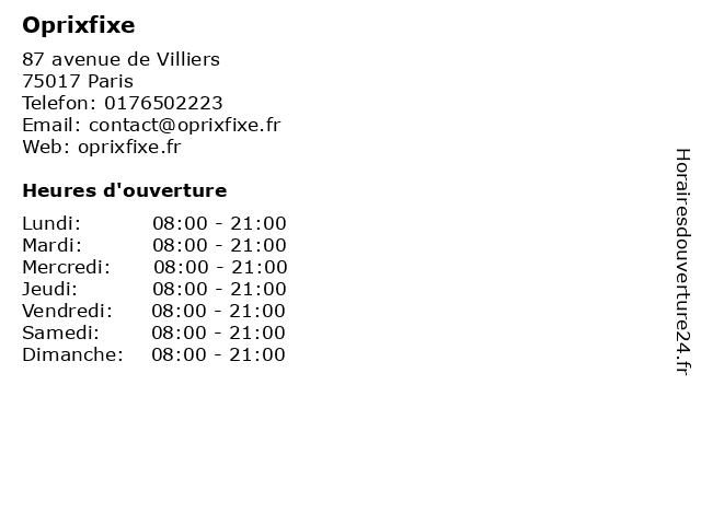 | Lundi | 08:00-21:00 |
