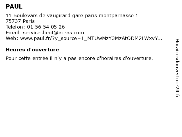 1 PAUL (Distance: 0,08 km) Gare montparnasse, 75015 Paris café, paul, restaurant à emporter, restaurants, snack 2 Paul (Distance: 3,38 km) . Place du 11 novembre 1918, 75010 Paris cafe, chaussures, enfants, homme, lingerie, mode femme, paul, restaurant, service, shopping 3 PAUL (Distance: 3,61 km) 41 Boulevard Malesherbes, 75008 Paris boulangeries, boutique de desserts, café, paul, restaurant à emporter 4 Paul (Distance: 3,84 km) . Place Louis Armand, 75517 Paris cafe, care, chaussures, enfants, homme, lingerie, mode femme, paul, restaurant, service, shopping 5 PAUL (Distance: 3,84 km) 193 Rue De Bercy, 75012 Paris boulangeries, boutique de desserts, café, paul, restaurant à emporter 6 PAUL (Distance: 3,86 km) 1 Cour de Rome, 75008 Paris alimentation, beauté & sante, culture & loisirs, enfants, high-tech, maison & déco, mode, paul, restaurants |