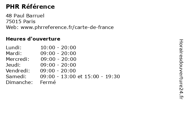 | Samedi | 09:00-13:00 et 15:00-19:30 |