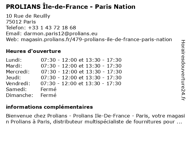 | Lundi | 07:30-12:00 et 13:30-17:30 |