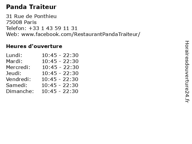 | Lundi | 10:45-22:30 |