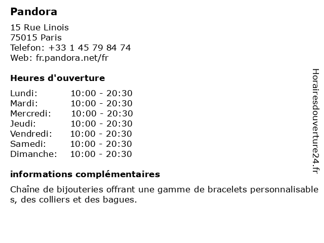 1 Pandora (Distance: 2,93 km) 142 Av. Des Champs-élysées, 75008 Paris bijoutier, création de bijoux, magasin d’accessoires de mode, manufacture, mode, pandora 2 Pandora (Distance: 3,16 km) 132 Rue de Rennes, 75006 Paris bagues, bijouterie, bijoux, bijoux personnalisés, bracelets, charms, charms pandora, colliers, pandora, pendentifs 3 Pandora (Distance: 3,46 km) 5 Rue Tony Garnier, 92100 Boulogne-Billancourt bagues, bijouterie, bijoux, bijoux personnalisés, bracelets, charms, charms pandora, colliers, pandora, pendentifs 4 Pandora (Distance: 4,10 km) 99 Rue de Rivoli, 75001 Paris bagues, bijouterie, bijoux, bijoux personnalisés, bracelets, charms, charms pandora, colliers, pandora, pendentifs 5 Pandora (Distance: 4,35 km) 1 Cour du Havre, 75008 Paris bagues, bijouterie, bijoux, bijoux personnalisés, bracelets, charms, charms pandora, colliers, pandora, pendentifs 6 Pandora (Distance: 4,45 km) 13 Rue d'Amsterdam, 75008 Paris cafe, chaussures, enfants, homme, mode femme, pandora, restaurant, service, sport |