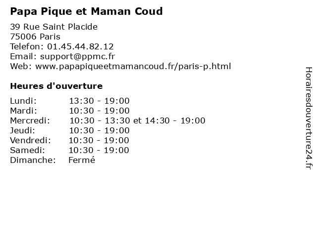 Mercredi | 10:30-13:30 et 14:30-19:00 |